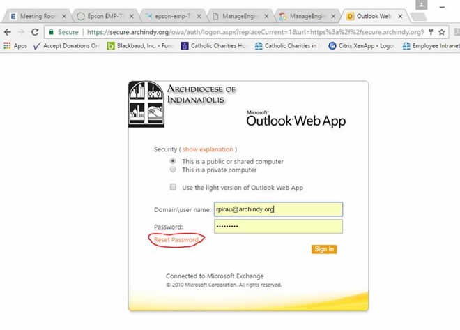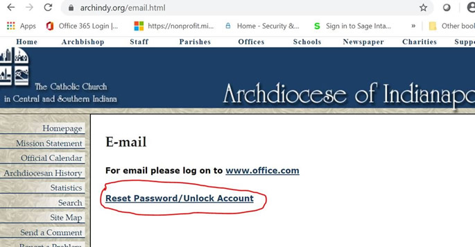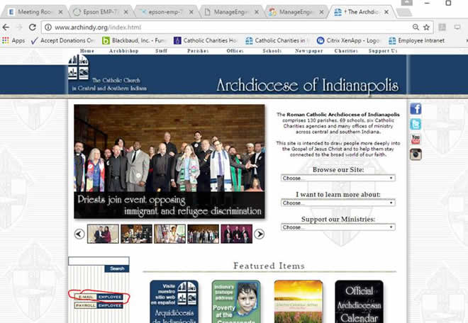 Option 1) Open a web browser and input archindy.org.  Click on employee email: