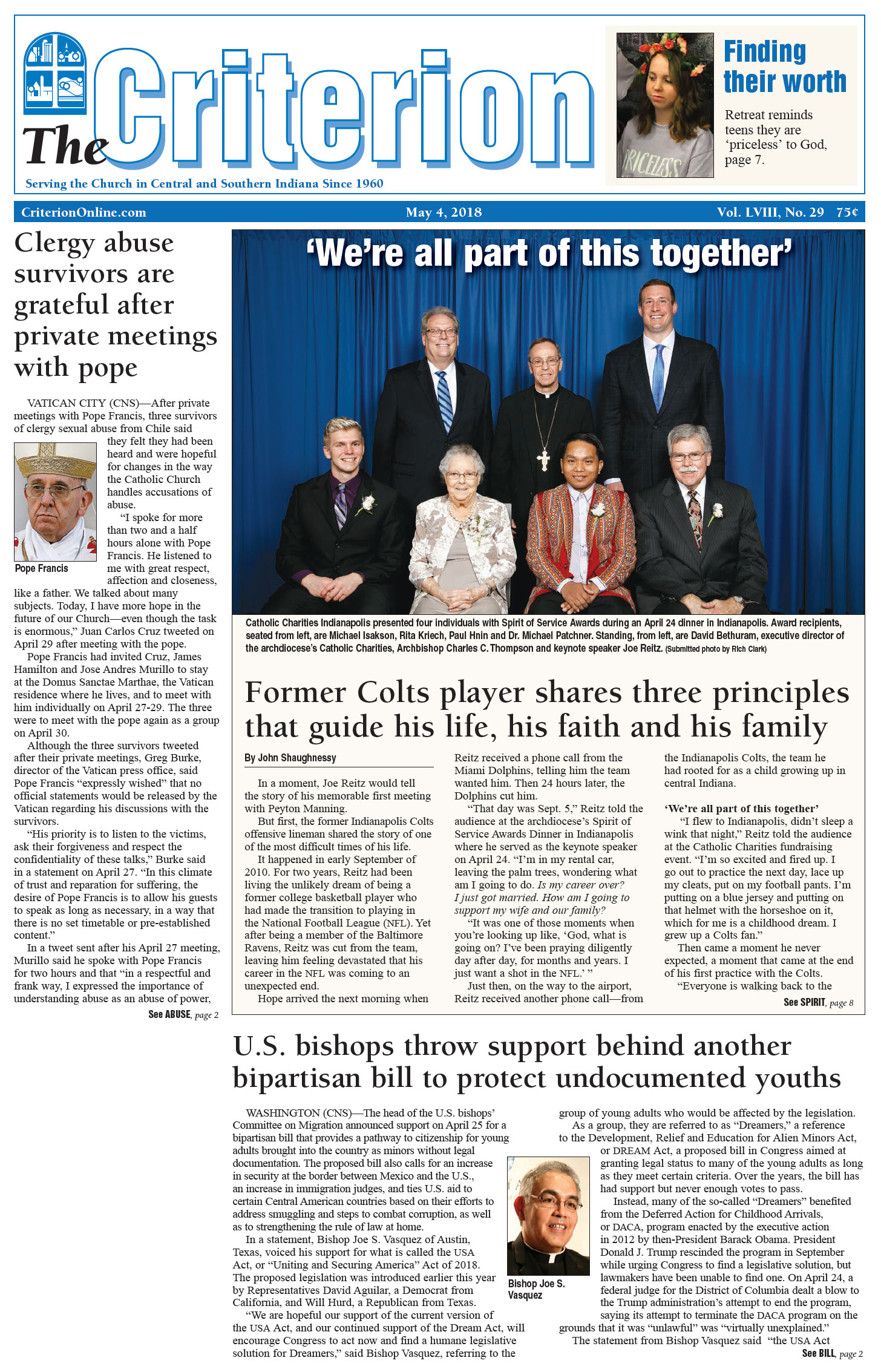 The latest edition of The Criterion has been printed and is on its way to subscribers. Below is a list of stories that will be appearing in the issue, along with regular features like the archbishop's column, the editorial page and our events calendar.