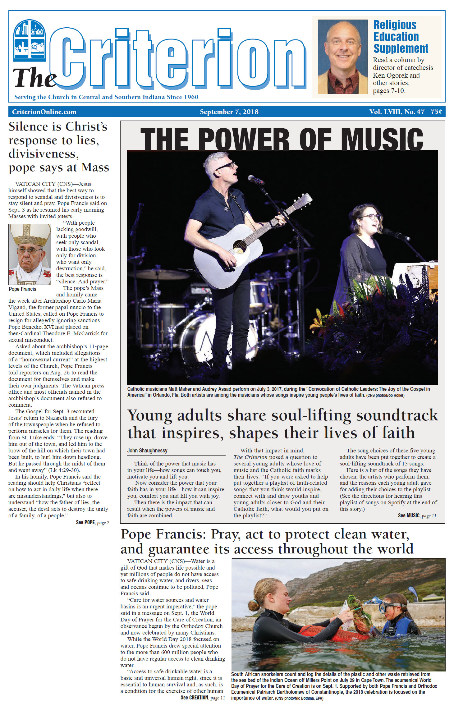 The latest edition of The Criterion has been printed and is on its way to subscribers. Below is a list of stories that will be appearing in the issue, along with regular features like the archbishop's column, the editorial page and our events calendar.