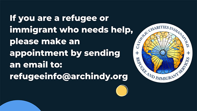 If you are a refugee or immigrant who needs help, please make an appointment by sending an email to refugeeinfo@archindy.org