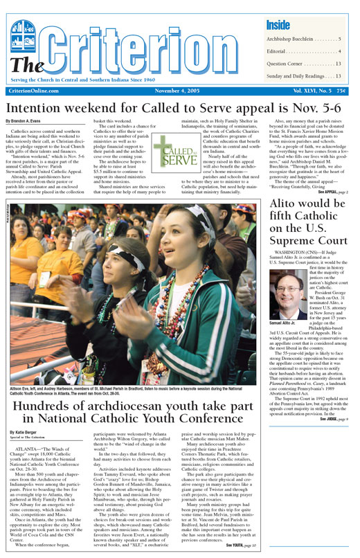 The latest edition of The Criterion has been printed and is on its way to subscribers. Below are a list of stories that will be appearing in the issue, along with regular features like Archbishop Buechlein's column, the editorial page and our newly redesigned events calendar.