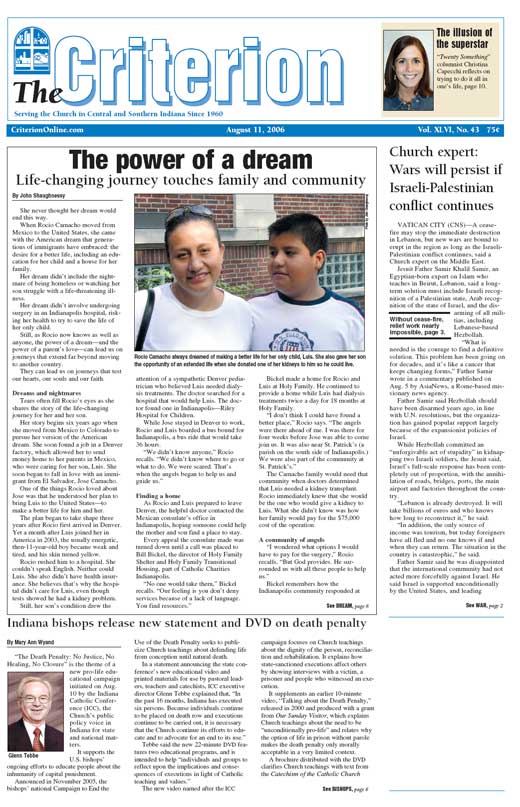 The latest edition of The Criterion has been printed and is on its way to subscribers. Below is a list of stories that will be appearing in the issue, along with regular features like Archbishop Buechlein's column, the editorial page and our redesigned events calendar.