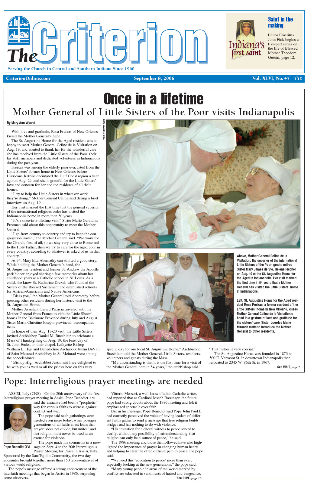The latest edition of The Criterion has been printed and is on its way to subscribers. Below is a list of stories that will be appearing in the issue, along with regular features like Archbishop Buechlein's column, the editorial page and our redesigned events calendar.
