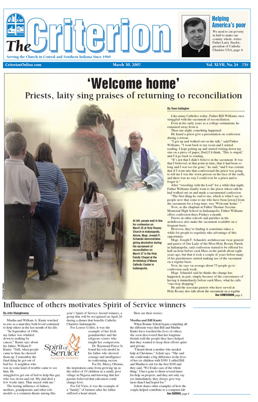 The latest edition of The Criterion has been printed and is on its way to subscribers. Below is a list of stories that will be appearing in the issue, along with regular features like Archbishop Buechlein's column, the editorial page and our events calendar.