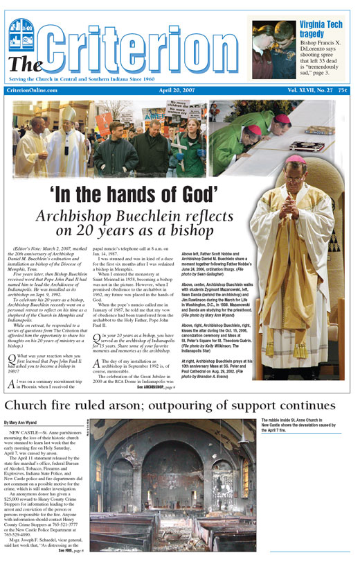 The latest edition of The Criterion has been printed and is on its way to subscribers. Below is a list of stories that will be appearing in the issue, along with regular features like Archbishop Buechlein's column, the editorial page and our events calendar.