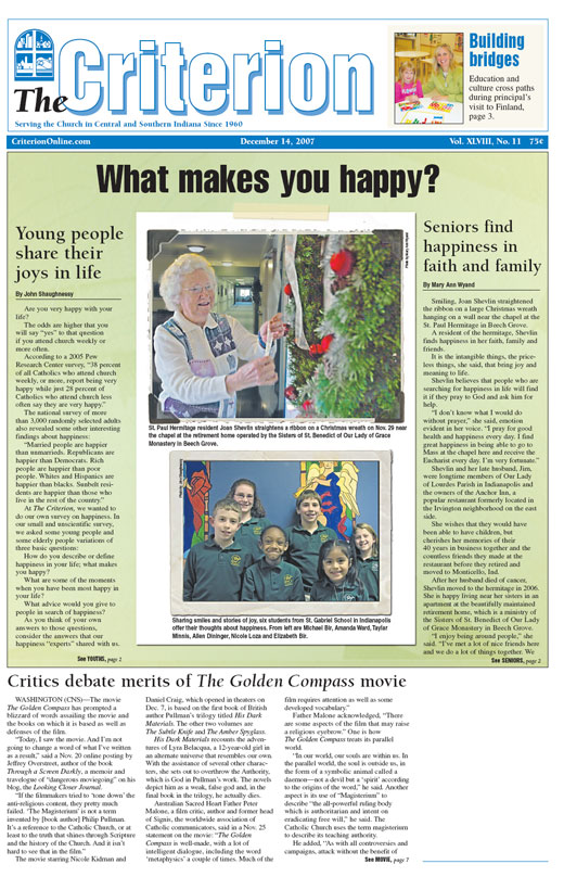 The latest edition of The Criterion has been printed and is on its way to subscribers. Below is a list of stories that will be appearing in the issue, along with regular features like Archbishop Buechlein's column, the editorial page and our events calendar.