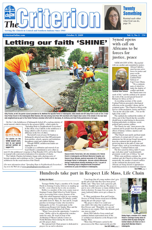 The latest edition of The Criterion has been printed and is on its way to subscribers. Below is a list of stories that will be appearing in the issue, along with regular features like Archbishop Buechlein's column, the editorial page and our events calendar.
