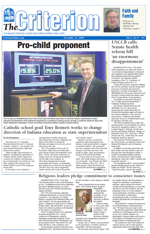 • Pro-child proponent: Catholic school grad Tony Bennett works to change direction of Indiana education as state superintendent