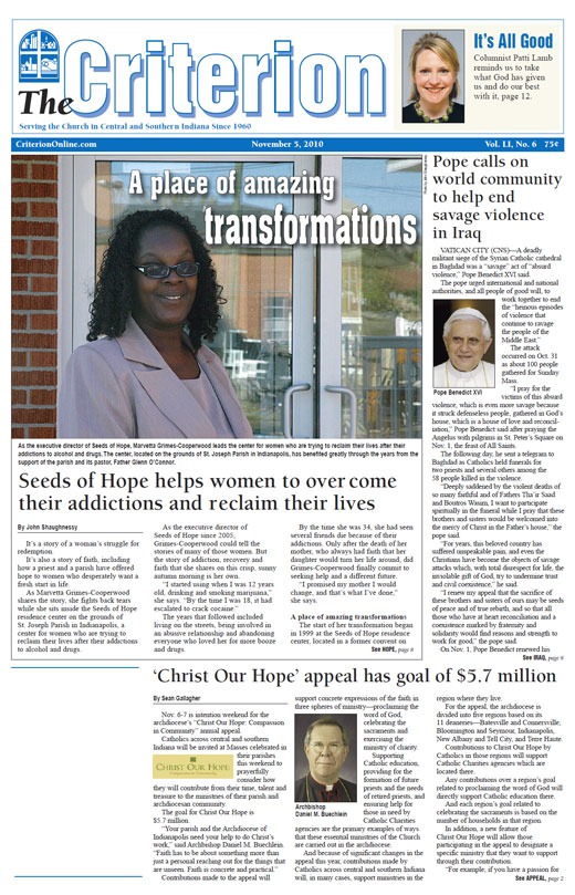 The latest edition of The Criterion has been printed and is on its way to subscribers. Below is a list of stories that will be appearing in the issue, along with regular features like Archbishop Buechlein's column, the editorial page and our events calendar.