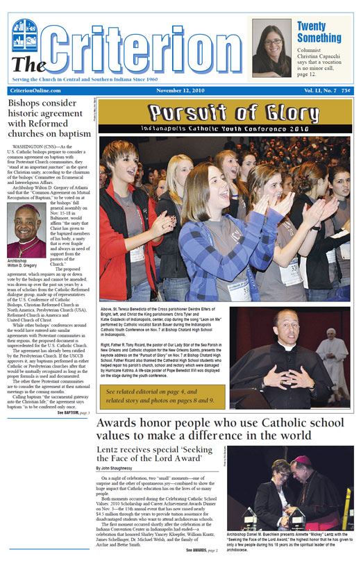 The latest edition of The Criterion has been printed and is on its way to subscribers. Below is a list of stories that will be appearing in the issue, along with regular features like Archbishop Buechlein's column, the editorial page and our events calendar.