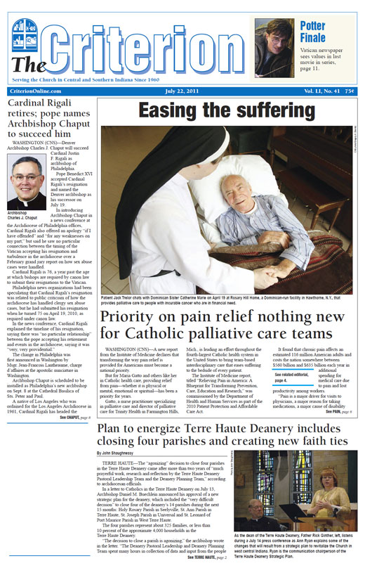 The latest edition of The Criterion has been printed and is on its way to subscribers. Below is a list of stories that will be appearing in the issue, along with regular features like Archbishop Buechlein's column, the editorial page and our events calendar.