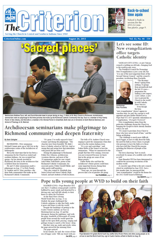 The latest edition of The Criterion has been printed and is on its way to subscribers. Below is a list of stories that will be appearing in the issue, along with regular features like Archbishop Buechlein's column, the editorial page and our events calendar.