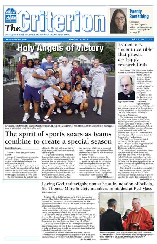 The latest edition of The Criterion has been printed and is on its way to subscribers. Below is a list of stories that will be appearing in the issue, along with regular features like Archbishop Buechlein's column, the editorial page and our events calendar.