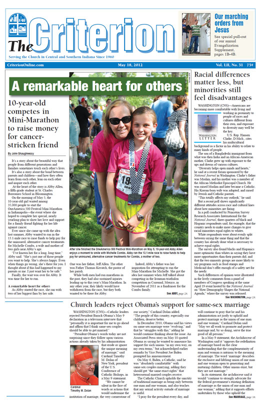 The latest edition of The Criterion has been printed and is on its way to subscribers. Below is a list of stories that will be appearing in the issue, along with regular features like Archbishop Buechlein's column, the editorial page and our events calendar.