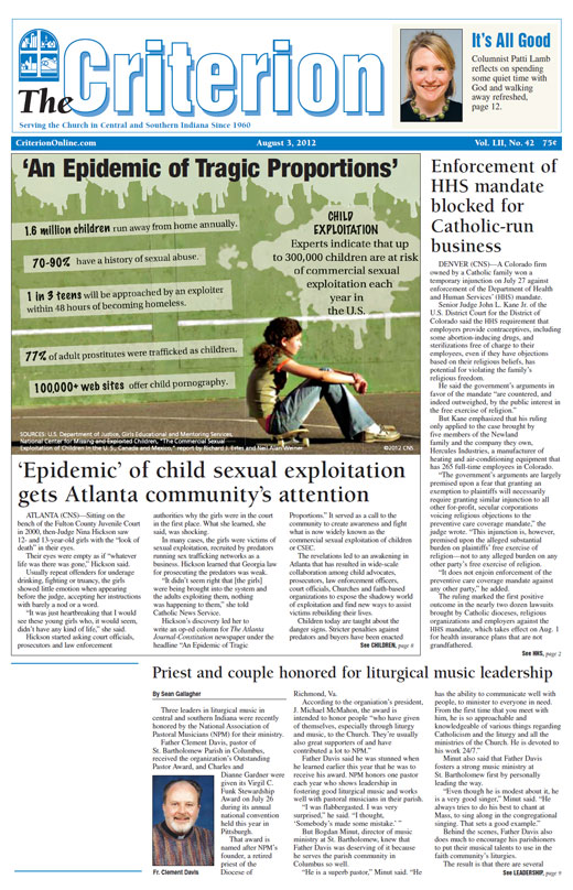 The latest edition of The Criterion has been printed and is on its way to subscribers. Below is a list of stories that will be appearing in the issue, along with regular features like Archbishop Buechlein's column, the editorial page and our events calendar.
