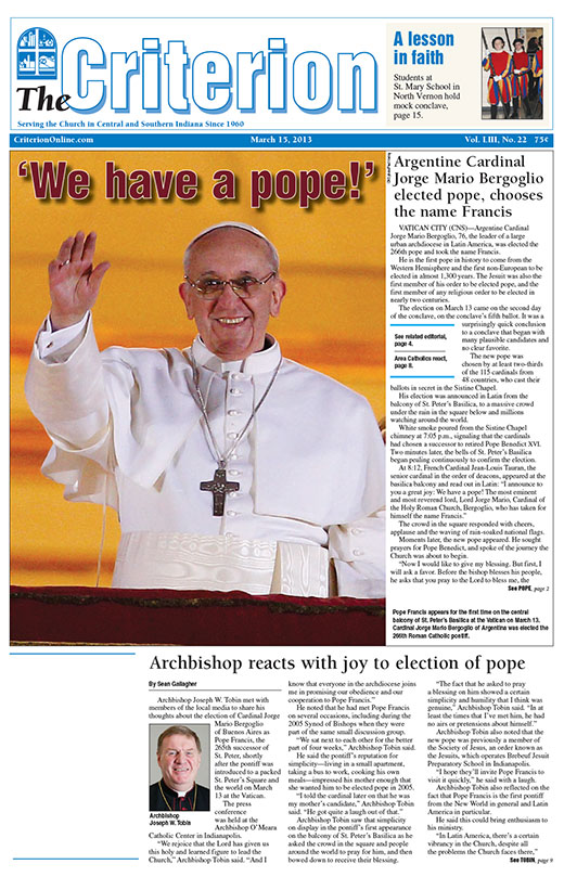 The latest edition of The Criterion has been printed and is on its way to subscribers. Below is a list of stories that will be appearing in the issue, along with regular features like Archbishop Buechlein's column, the editorial page and our events calendar.