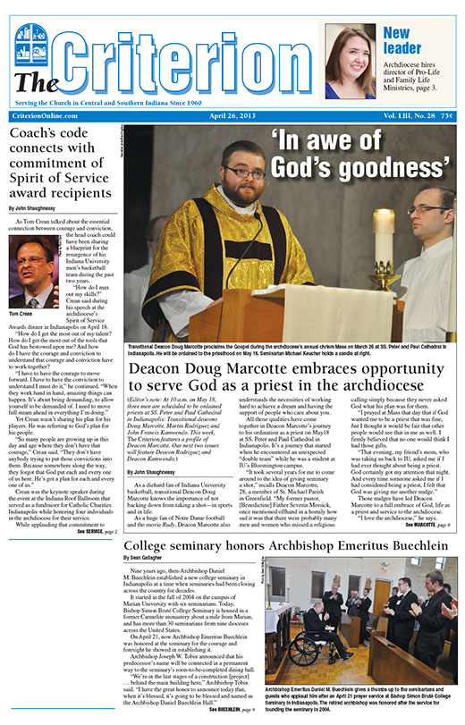 The latest edition of The Criterion has been printed and is on its way to subscribers. Below is a list of stories that will be appearing in the issue, along with regular features like Archbishop Buechlein's column, the editorial page and our events calendar.