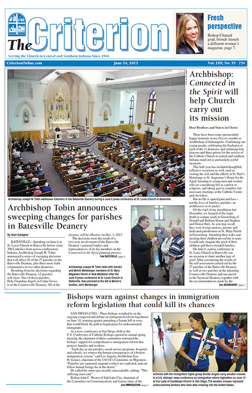 The latest edition of The Criterion has been printed and is on its way to subscribers. Below is a list of stories that will be appearing in the issue, along with regular features like Archbishop Buechlein's column, the editorial page and our events calendar.