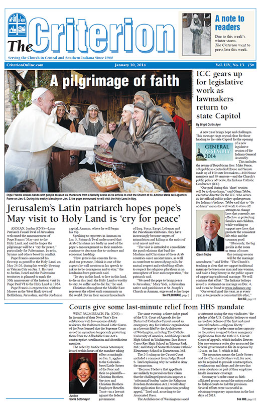 The latest edition of The Criterion has been printed and is on its way to subscribers. Below is a list of stories that will be appearing in the issue, along with regular features like Archbishop Buechlein's column, the editorial page and our events calendar.