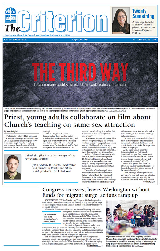 The latest edition of The Criterion has been printed and is on its way to subscribers. Below is a list of stories that will be appearing in the issue, along with regular features like Archbishop Buechlein's column, the editorial page and our events calendar.