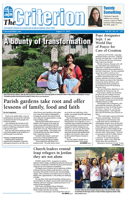 The latest edition of The Criterion has been printed and is on its way to subscribers. Below is a list of stories that will be appearing in the issue, along with regular features like Archbishop Tobin's column, the editorial page and our events calendar.