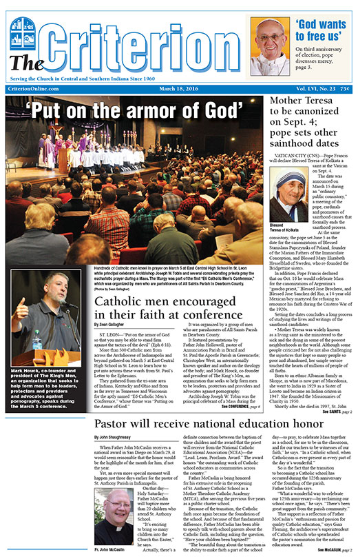 The latest edition of The Criterion has been printed and is on its way to subscribers. Below is a list of stories that will be appearing in the issue, along with regular features like Archbishop Tobin's column, the editorial page and our events calendar.
