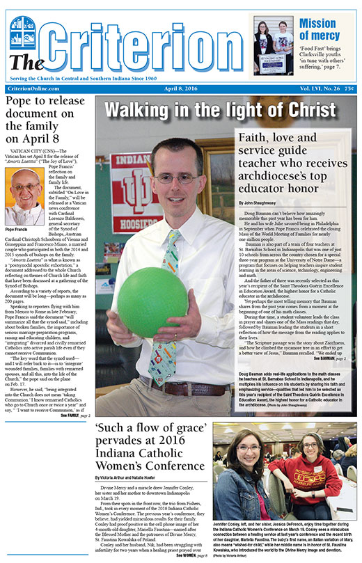 The latest edition of The Criterion has been printed and is on its way to subscribers. Below is a list of stories that will be appearing in the issue, along with regular features like Archbishop Tobin's column, the editorial page and our events calendar.