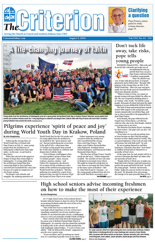 The latest edition of The Criterion has been printed and is on its way to subscribers. Below is a list of stories that will be appearing in the issue, along with regular features like Archbishop Tobin's column, the editorial page and our events calendar.