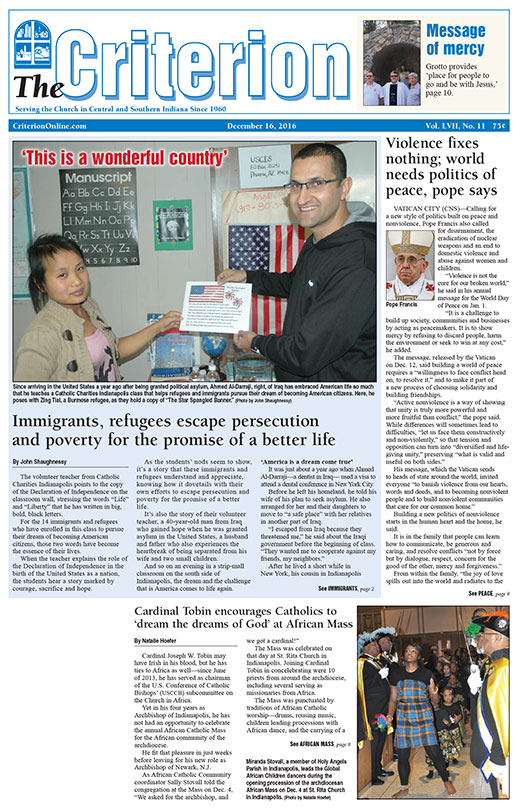 The latest edition of The Criterion has been printed and is on its way to subscribers. Below is a list of stories that will be appearing in the issue, along with regular features like Archbishop Tobin's column, the editorial page and our events calendar.