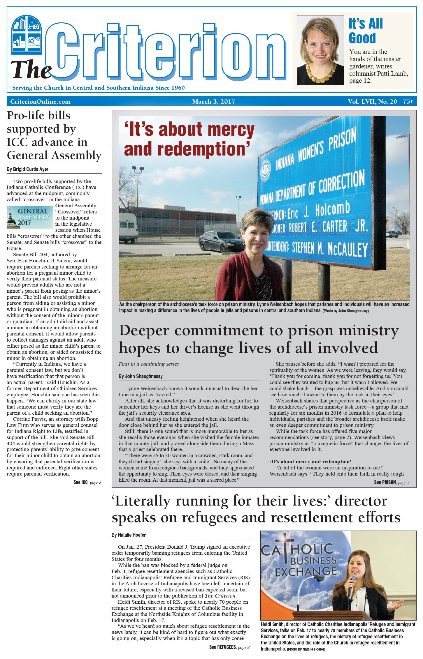 The latest edition of The Criterion has been printed and is on its way to subscribers. Below is a list of stories that will be appearing in the issue, along with regular features like the archbishop's column, the editorial page and our events calendar.
