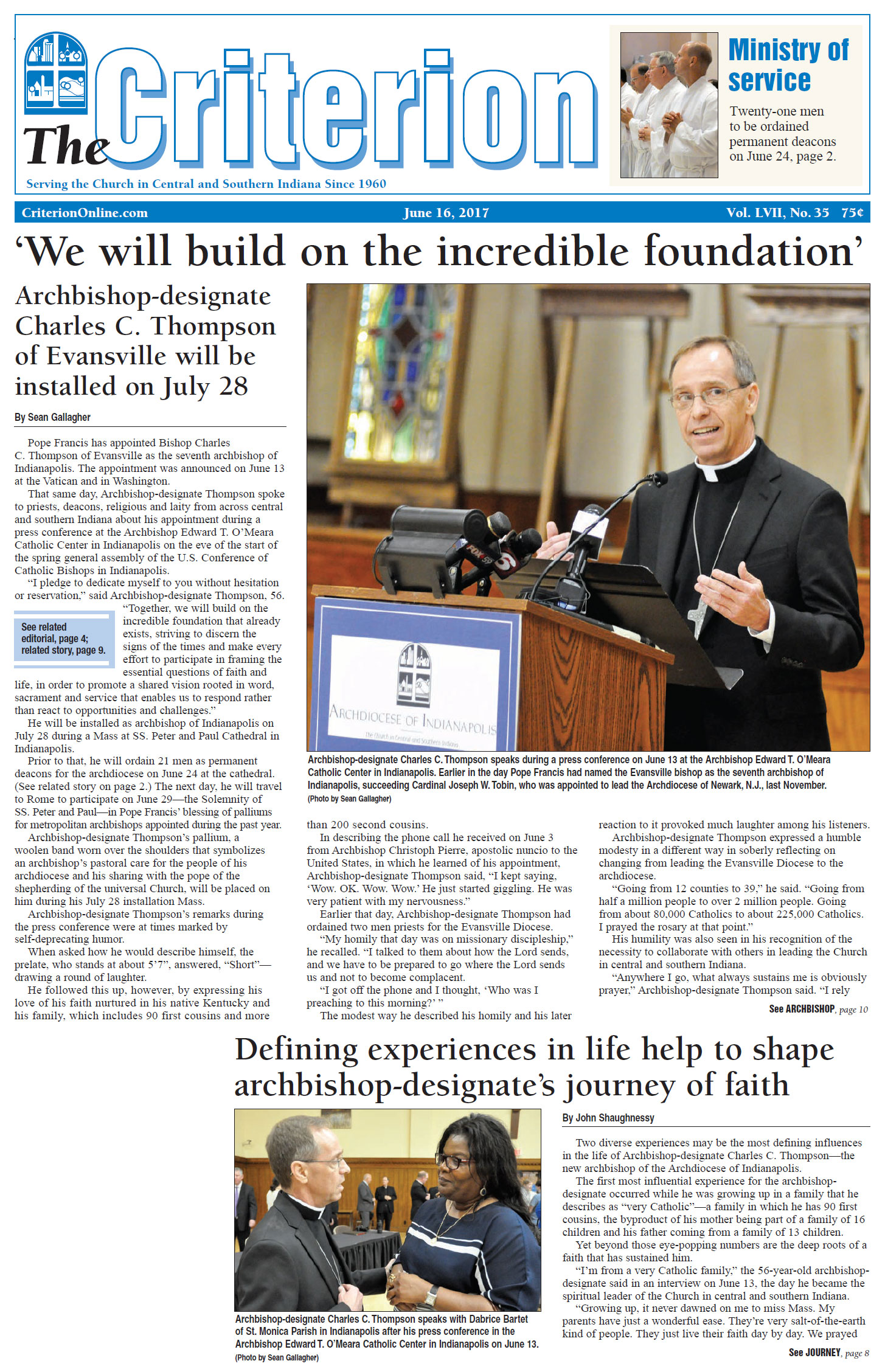 The latest edition of The Criterion has been printed and is on its way to subscribers. Below is a list of stories that will be appearing in the issue, along with regular features like the archbishop's column, the editorial page and our events calendar.