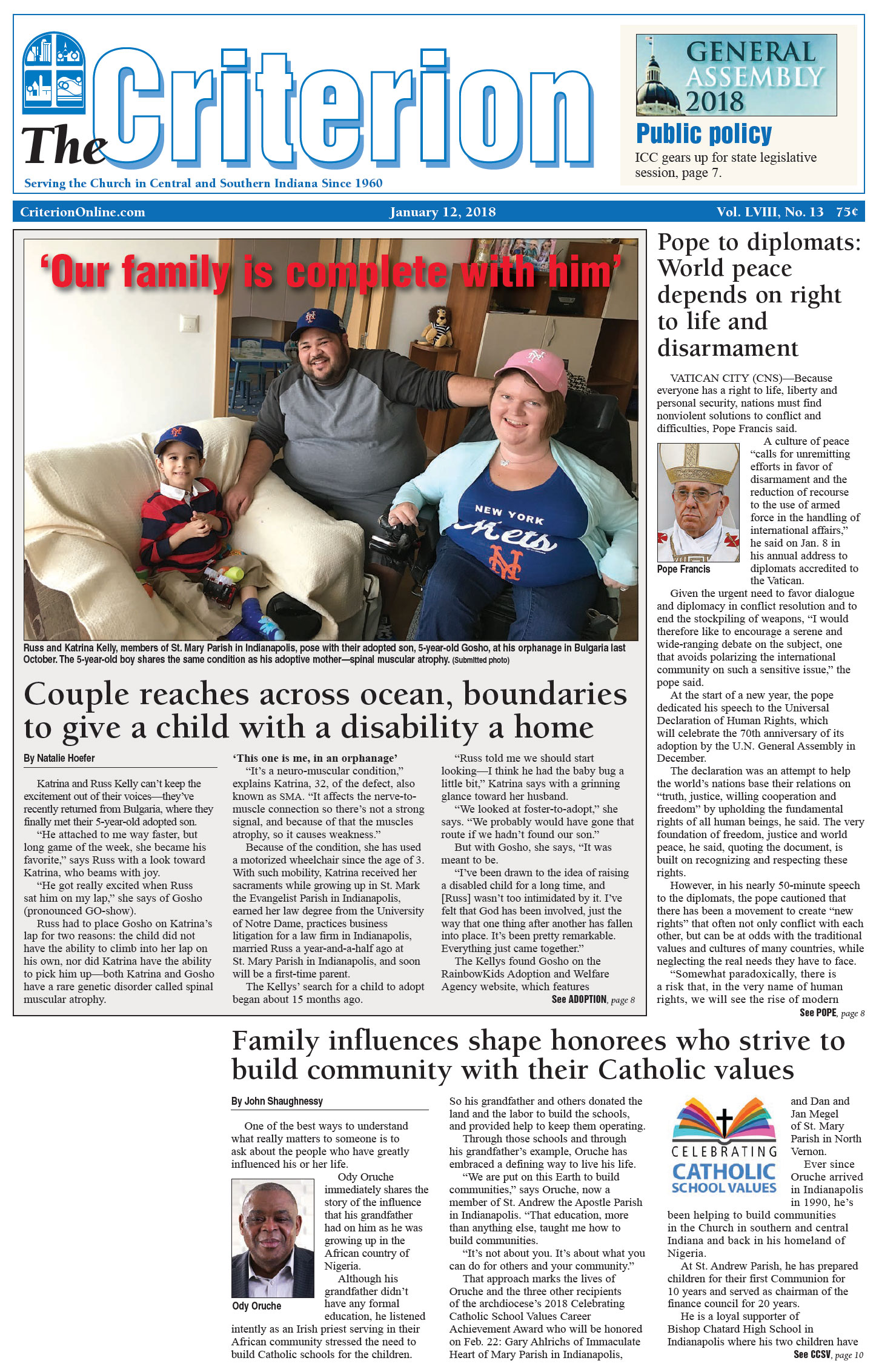 The latest edition of The Criterion has been printed and is on its way to subscribers. Below is a list of stories that will be appearing in the issue, along with regular features like the archbishop's column, the editorial page and our events calendar.