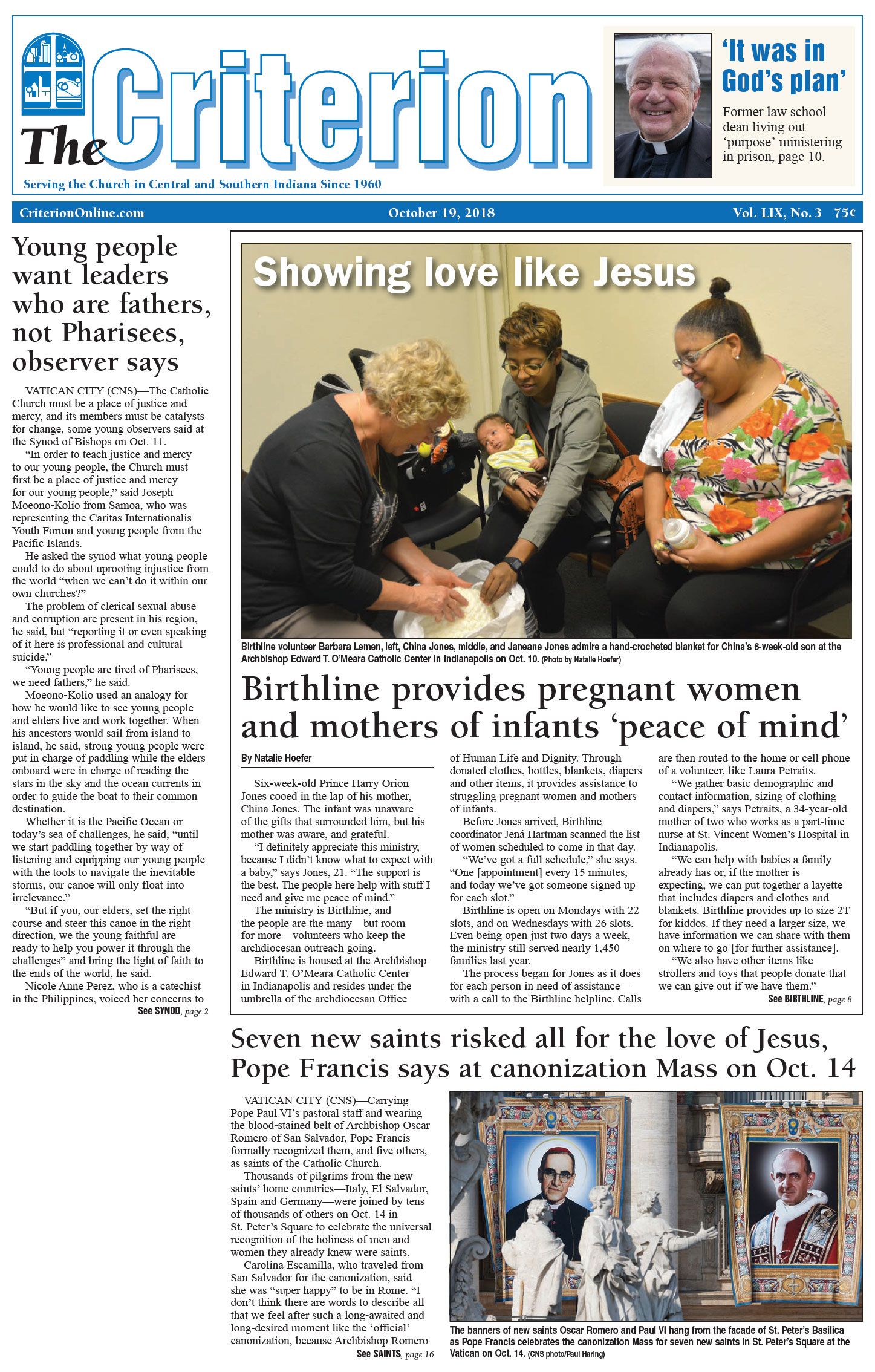 The latest edition of The Criterion has been printed and is on its way to subscribers. Below is a list of stories that will be appearing in the issue, along with regular features like the archbishop's column, the editorial page and our events calendar.