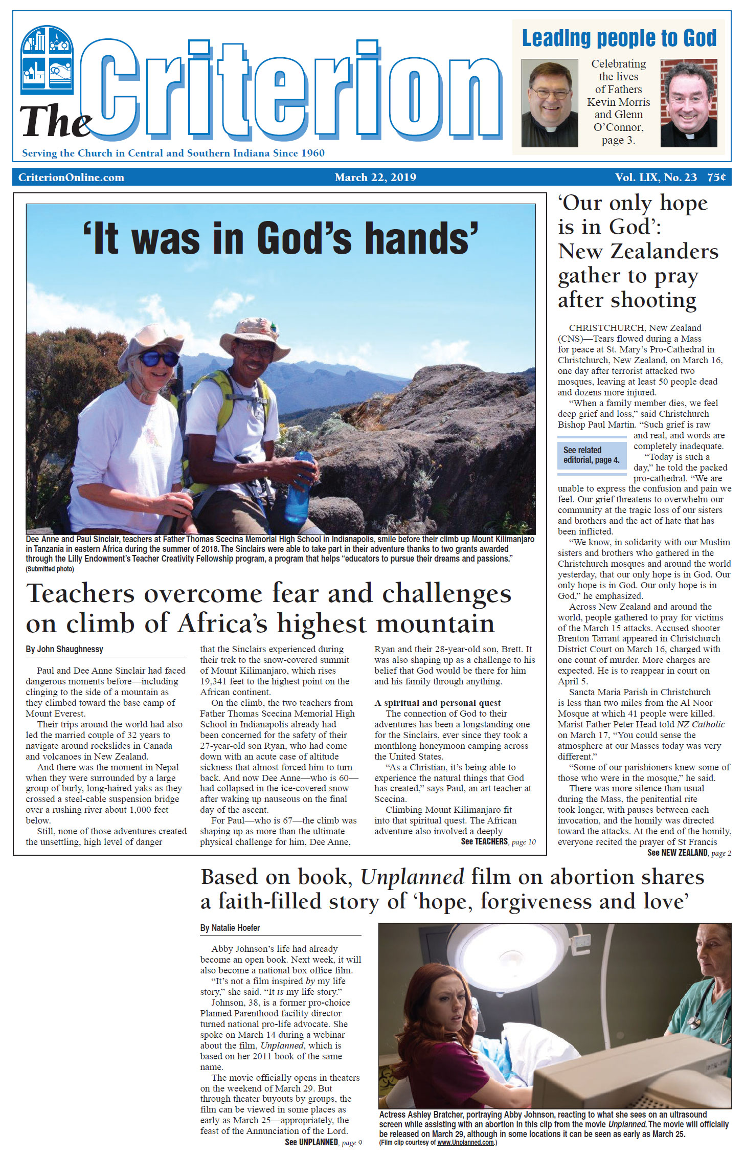 The latest edition of The Criterion has been printed and is on its way to subscribers. Below is a list of stories that will be appearing in the issue, along with regular features like the archbishop's column, the editorial page and our events calendar.