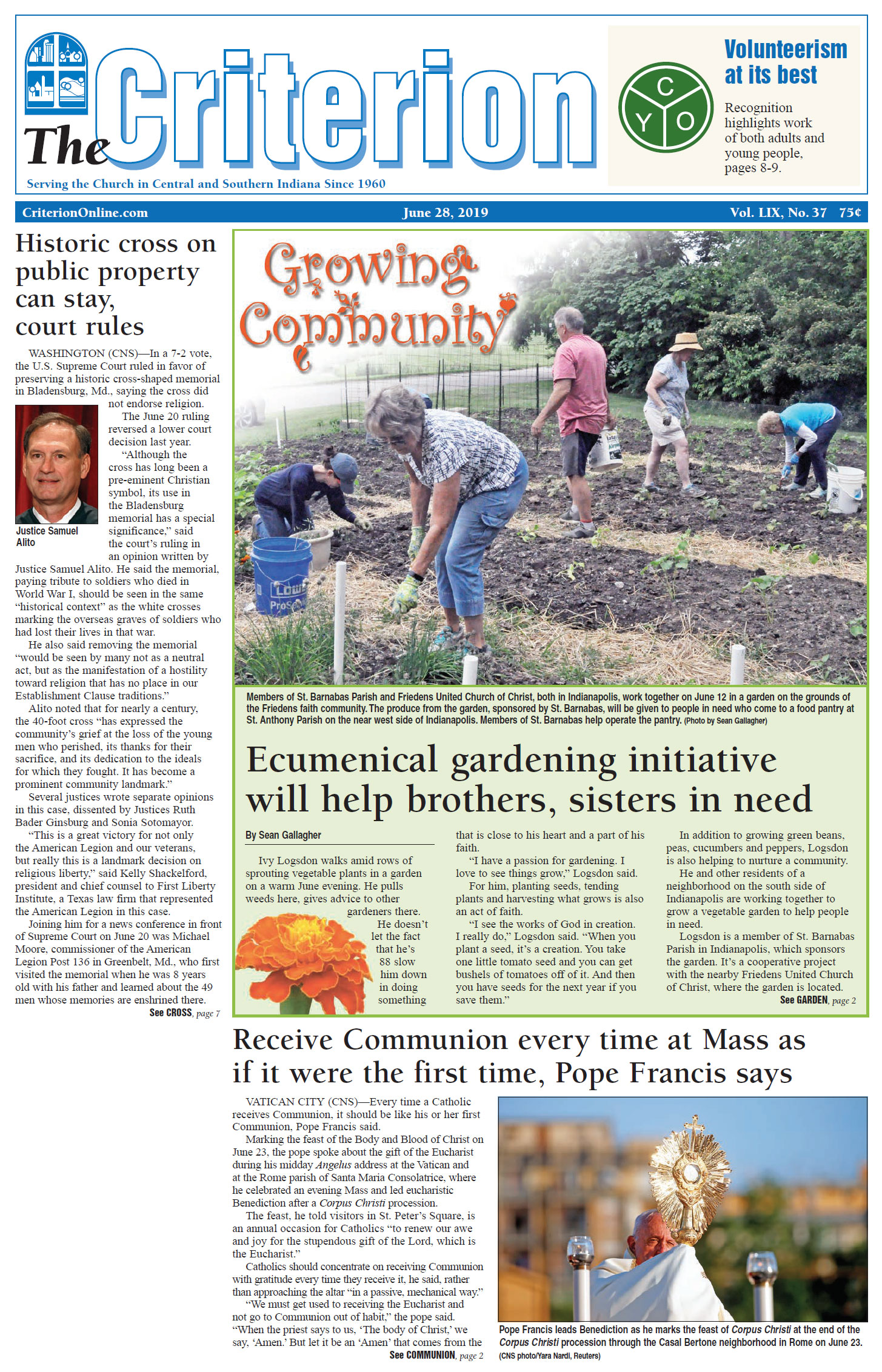 The latest edition of The Criterion has been printed and is on its way to subscribers. Below is a list of stories that will be appearing in the issue, along with regular features like the archbishop's column, the editorial page and our events calendar.