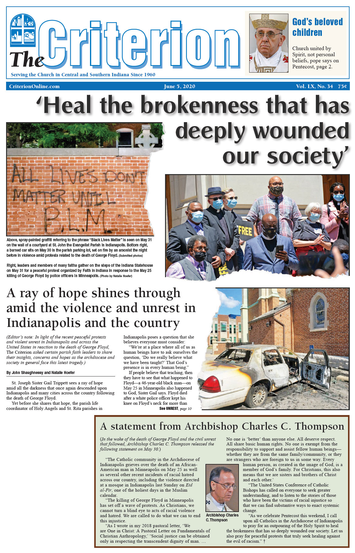 The latest edition of The Criterion has been printed and is on its way to subscribers. Below is a list of stories that will be appearing in the issue, along with regular features like the archbishop's column, the editorial page and our events calendar.