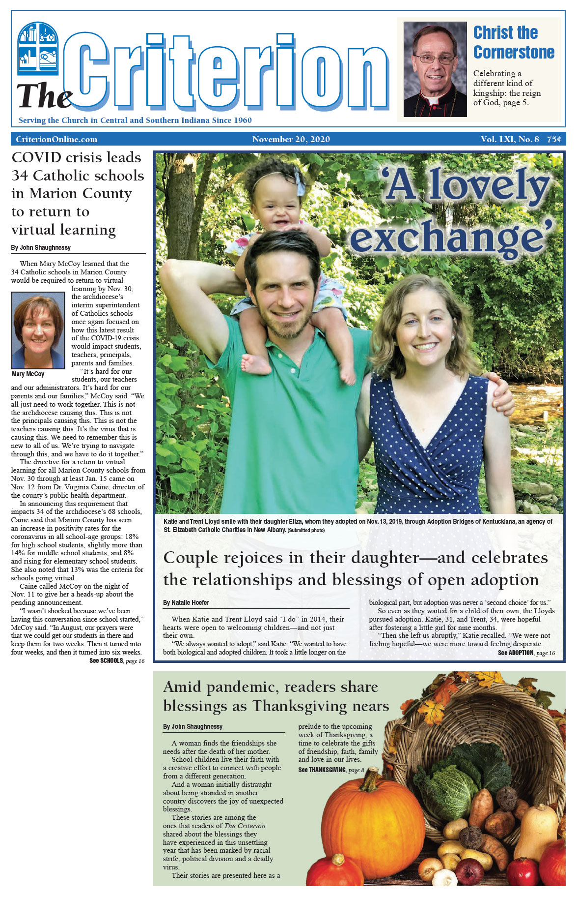 The latest edition of The Criterion has been printed and is on its way to subscribers. Below is a list of stories that will be appearing in the issue, along with regular features like the archbishop's column, the editorial page and our events calendar.