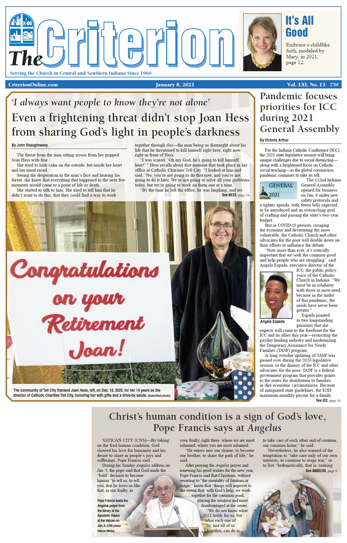 The latest edition of The Criterion has been printed and is on its way to subscribers. Below is a list of stories that will be appearing in the issue, along with regular features like the archbishop's column, the editorial page and our events calendar.