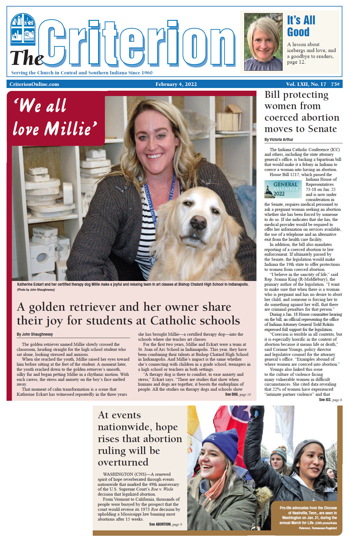 - ‘We all love Millie’: A golden retriever and her owner share their joy for students at Catholic schools