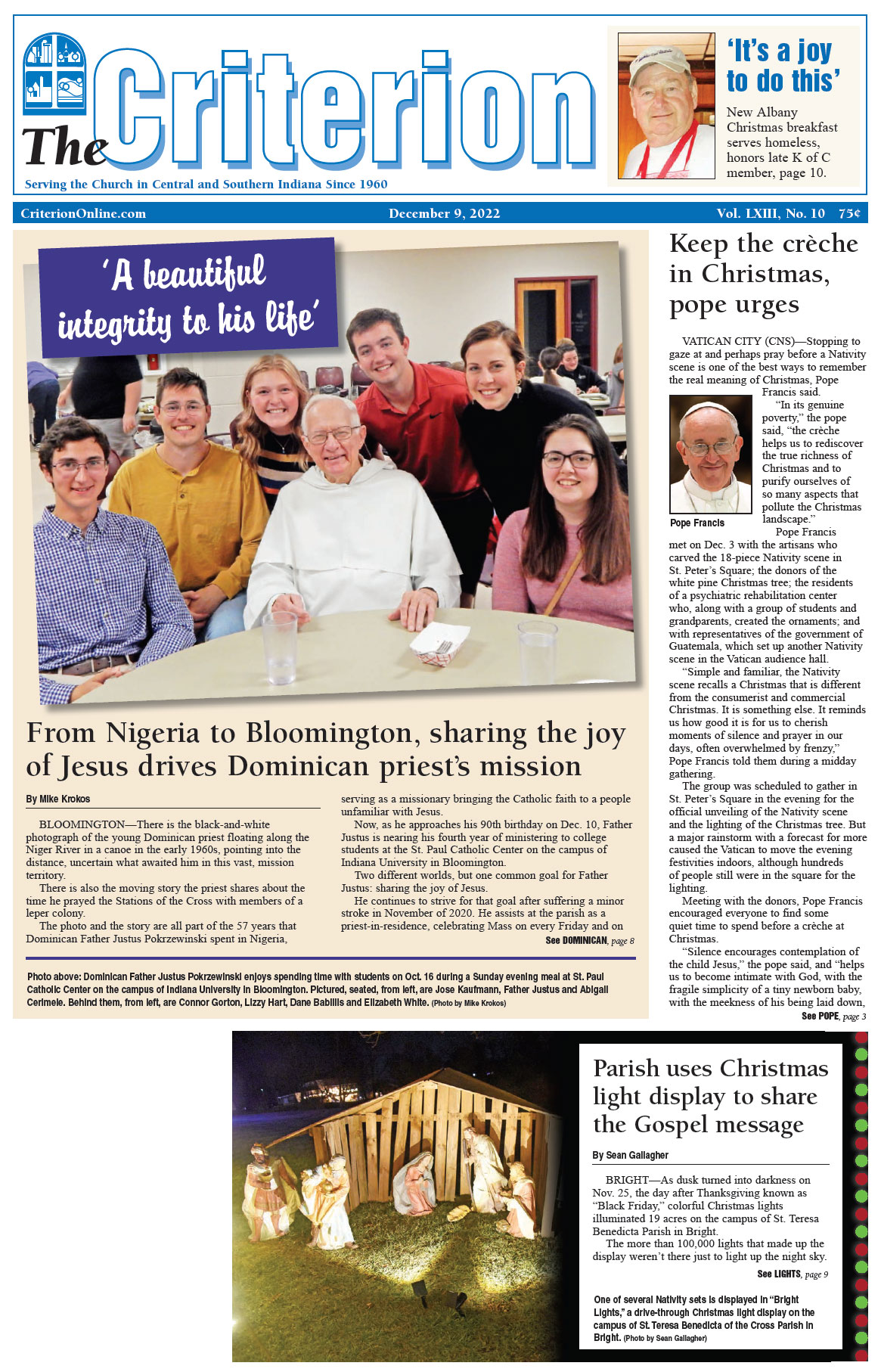 The latest edition of The Criterion has been printed and is on its way to subscribers. Below is a list of stories that will be appearing in the issue, along with regular features like the archbishop's column, the editorial page and our events calendar.