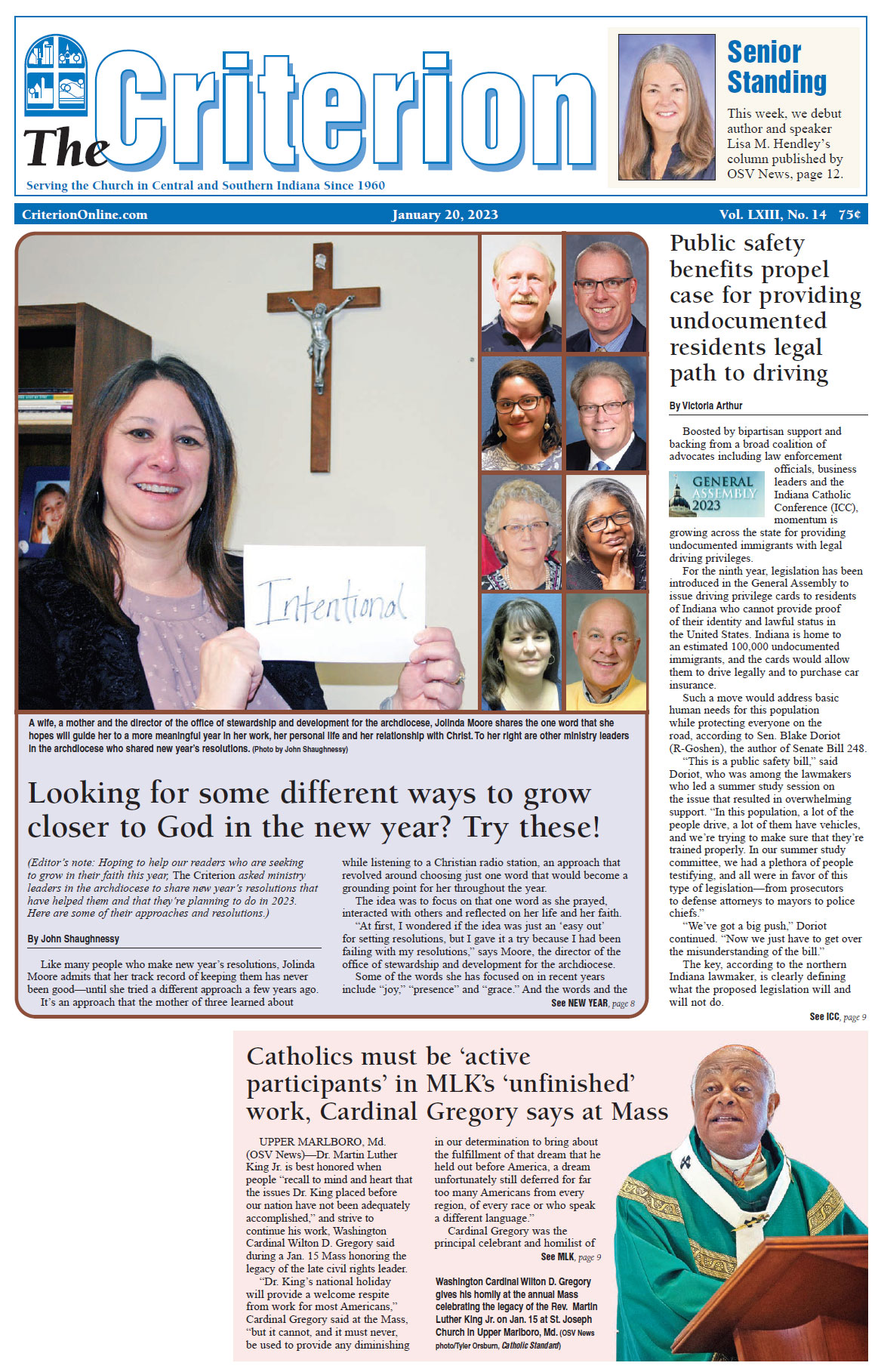 The latest edition of The Criterion has been printed and is on its way to subscribers. Below is a list of stories that will be appearing in the issue, along with regular features like the archbishop's column, the editorial page and our events calendar.