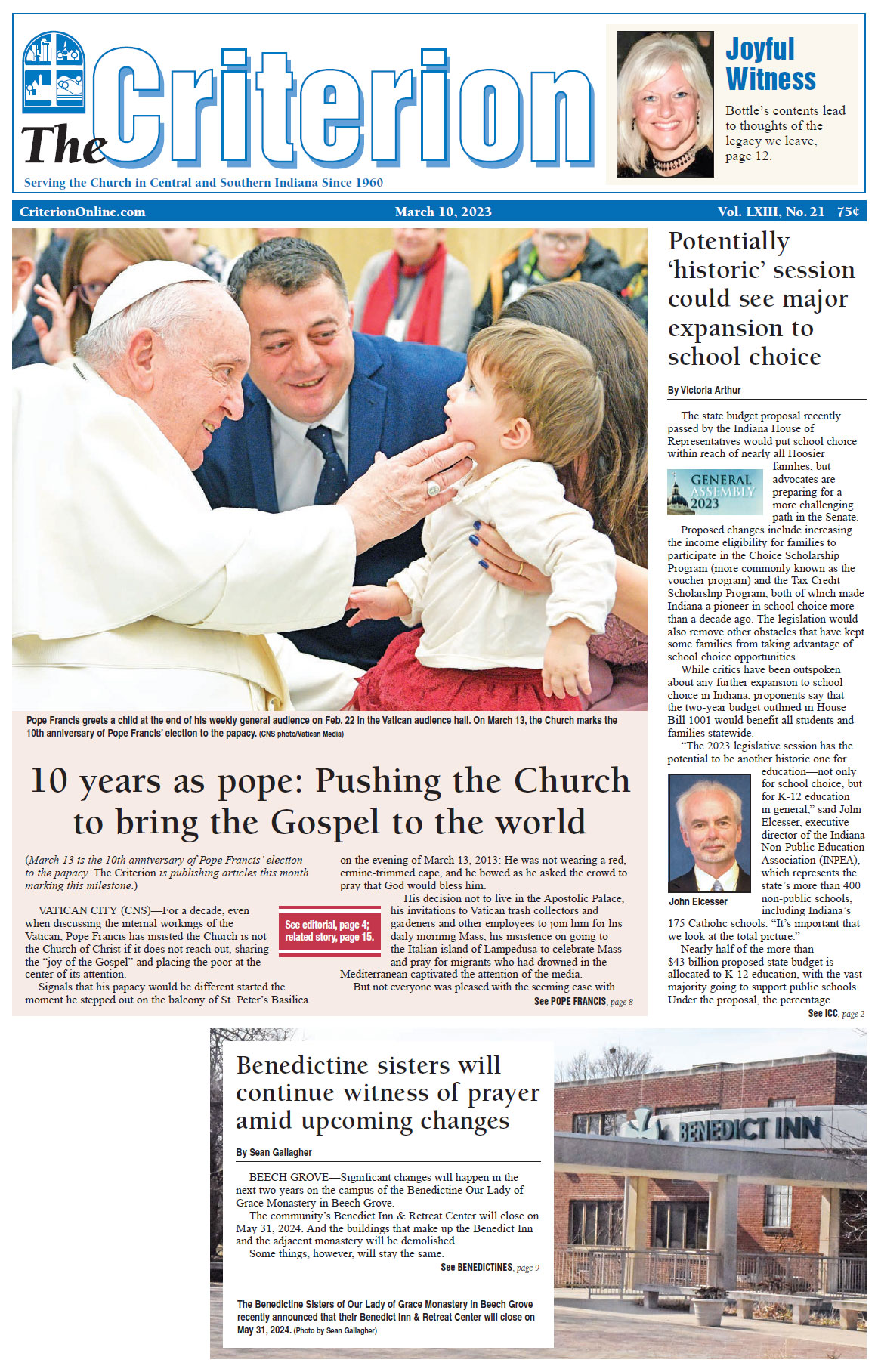 The latest edition of The Criterion has been printed and is on its way to subscribers. Below is a list of stories that will be appearing in the issue, along with regular features like the archbishop's column, the editorial page and our events calendar.