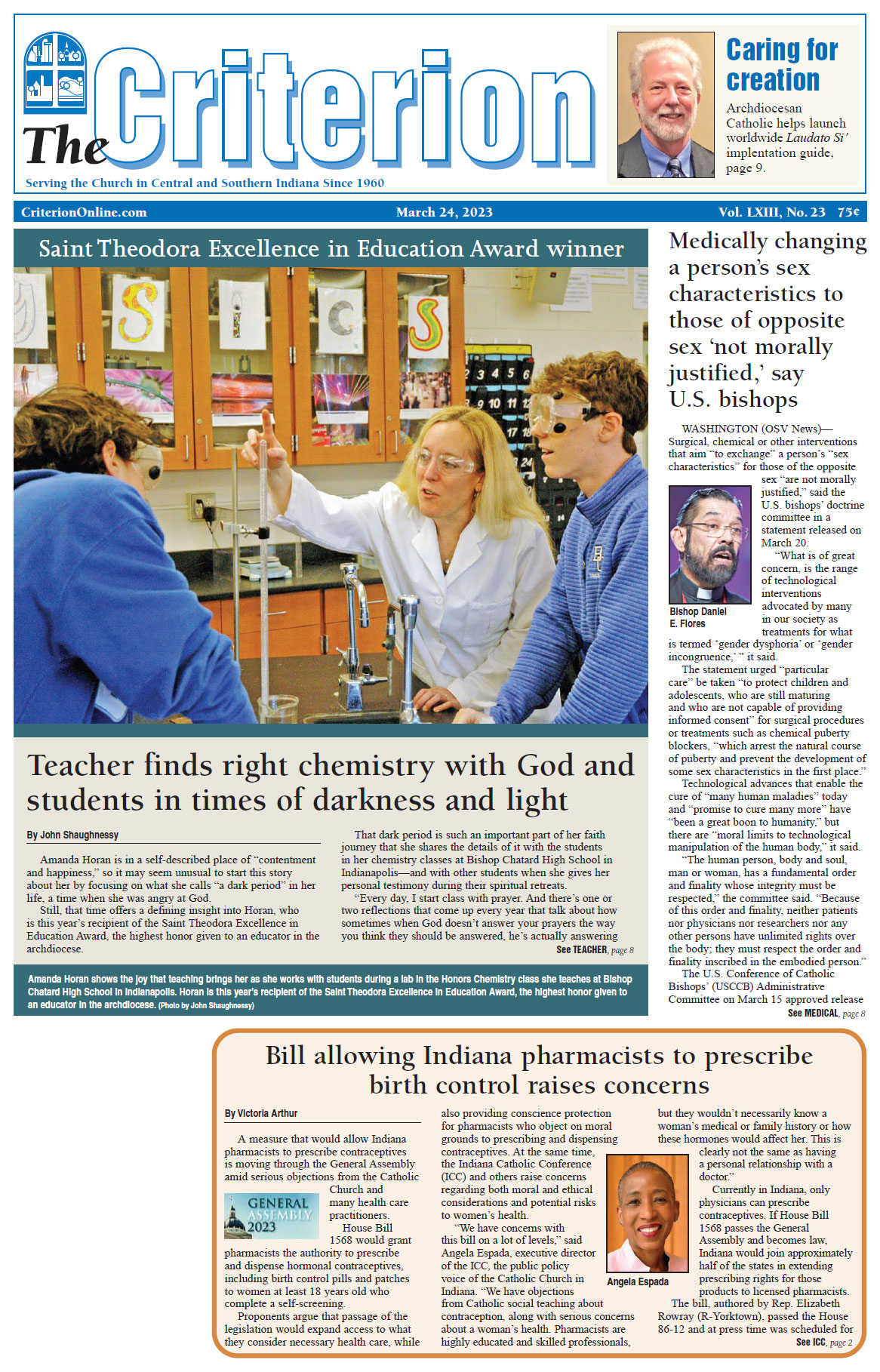 The latest edition of The Criterion has been printed and is on its way to subscribers. Below is a list of stories that will be appearing in the issue, along with regular features like the archbishop's column, the editorial page and our events calendar.