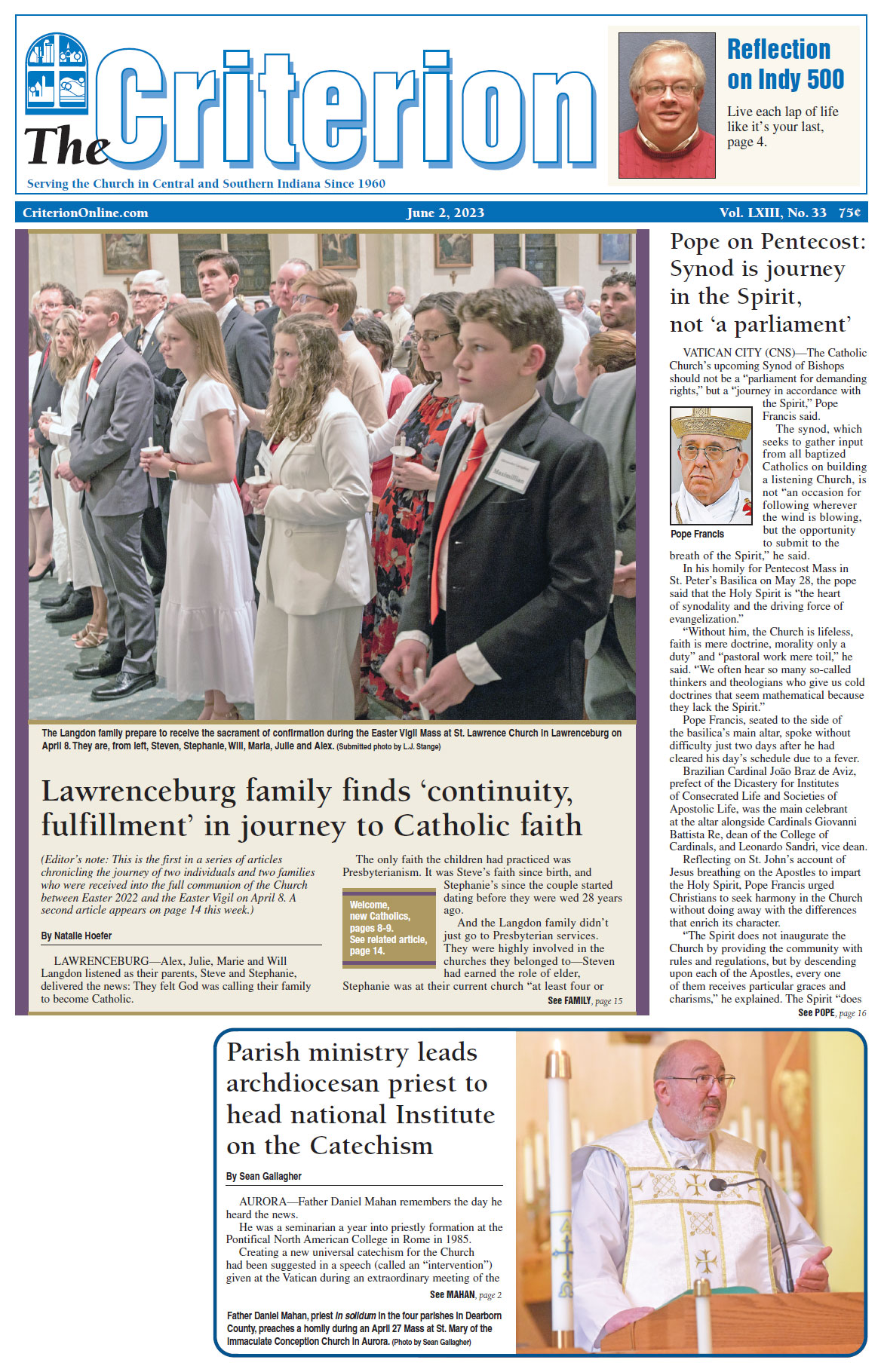 The latest edition of The Criterion has been printed and is on its way to subscribers. Below is a list of stories that will be appearing in the issue, along with regular features like the archbishop's column, the editorial page and our events calendar.