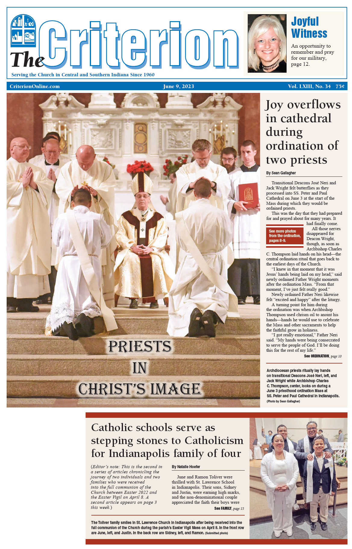 The latest edition of The Criterion has been printed and is on its way to subscribers. Below is a list of stories that will be appearing in the issue, along with regular features like the archbishop's column, the editorial page and our events calendar.