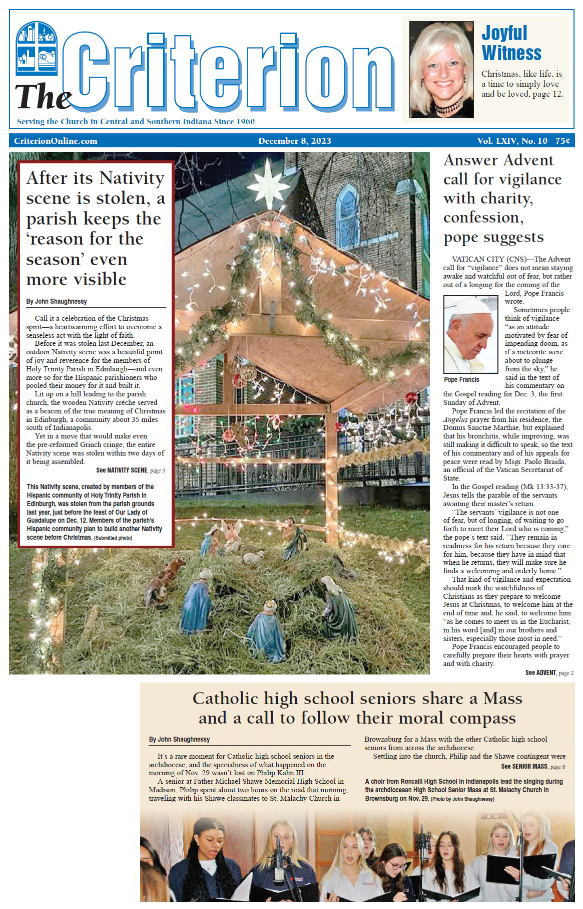 The latest edition of The Criterion has been printed and is on its way to subscribers. Below is a list of stories that will be appearing in the issue, along with regular features like the archbishop's column, the editorial page and our events calendar.