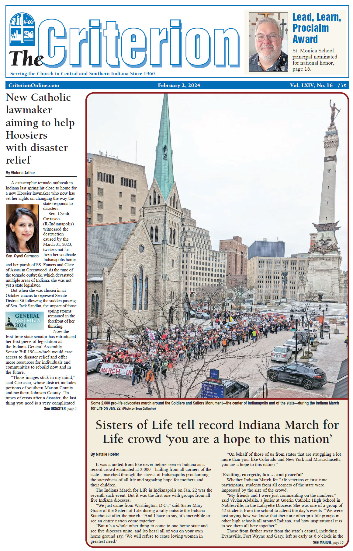 The latest edition of The Criterion has been printed and is on its way to subscribers. Below is a list of stories that will be appearing in the issue, along with regular features like the archbishop's column, the editorial page and our events calendar.