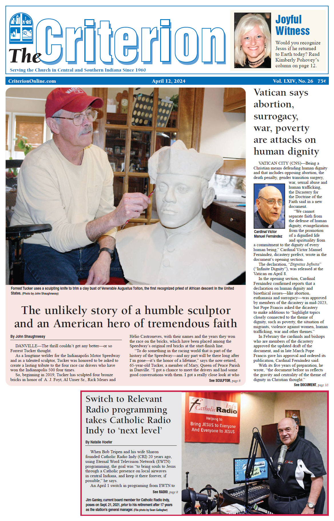 The latest edition of The Criterion has been printed and is on its way to subscribers. Below is a list of stories that will be appearing in the issue, along with regular features like the archbishop's column, the editorial page and our events calendar.